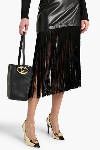 Rockstud Wispy leather and suede bucket bag