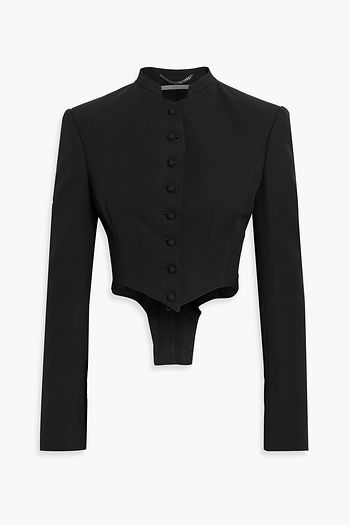 Cropped bow-detailed wool and silk-blend crepe jacket