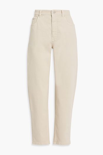 Bead-embellished high-rise tapered jeans