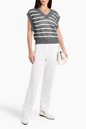 Sequin-embellished striped linen and cotton-blend sweater