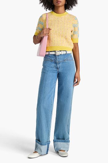 Cropped intarsia-knit sweater