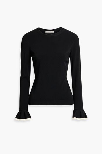 Ruffled tulle-trimmed ribbed wool sweater