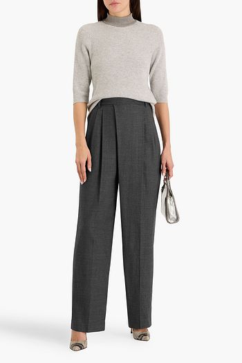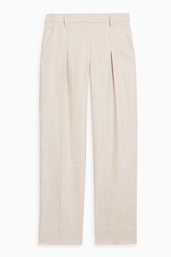 Pleated satin-trimmed wool-crepe straight-leg pants