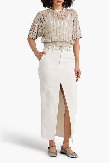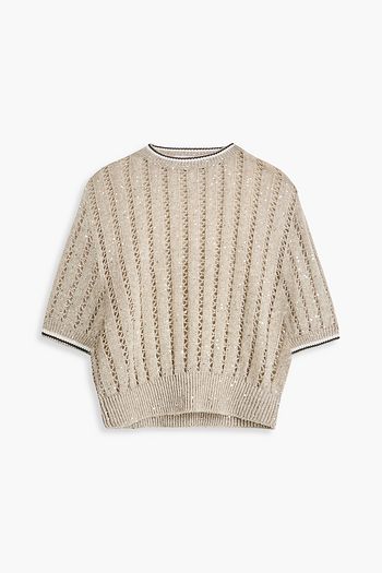 Bead-embellished striped cotton and silk-blend poplin shirt