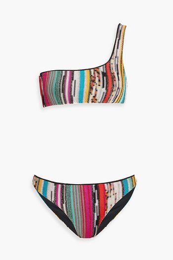 One-shoulder metallic space-dyed crochet-knit bikini