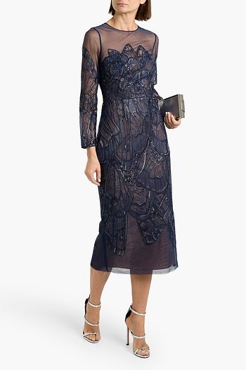 Sueño Costero cutout embellished metallic stretch-jersey midi dress