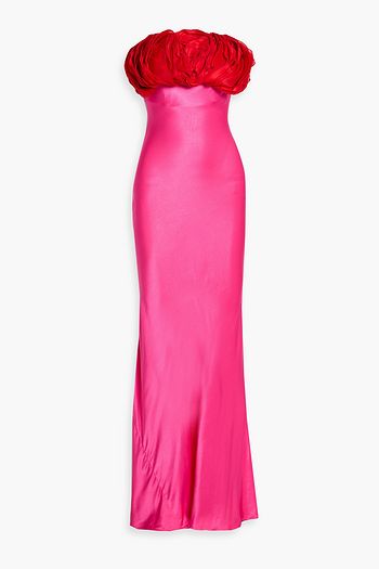 Verner paneled ruched silk-tulle and lace-trimmed jersey and cady gown