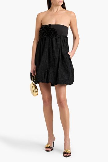 Off-the-shoulder ruched floral-print stretch-jersey mini dress