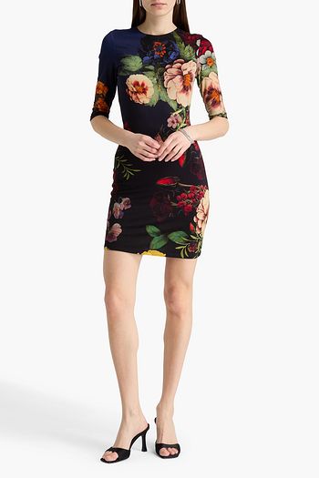 Lisandre asymmetric draped ruffled printed chiffon mini dress