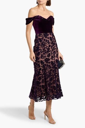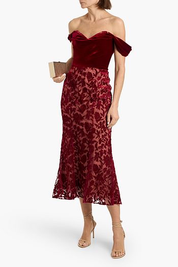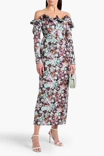 Burleigh off-the-shoulder metallic floral-brocade midi dress