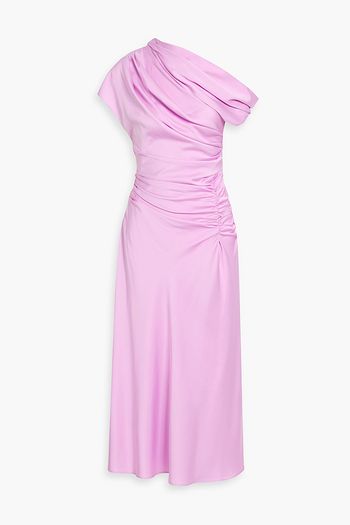 Off-the-shoulder ruched floral-print stretch-jersey mini dress