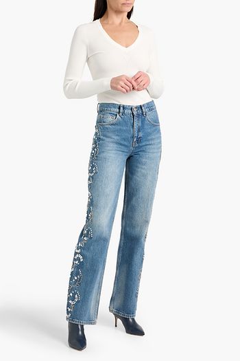 Embellished high-rise straight-leg jeans