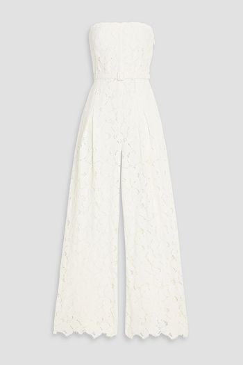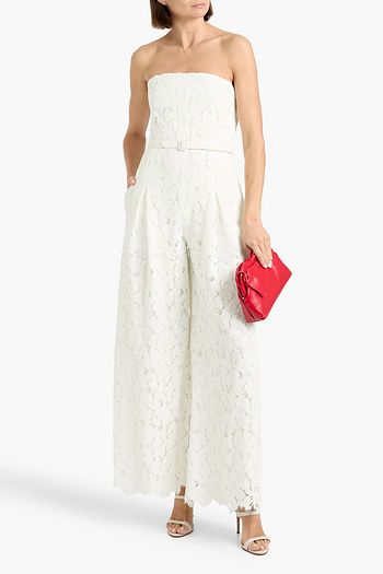 Rebecca strapless belted corded lace wide-leg jumpsuit