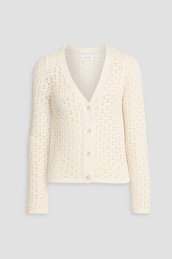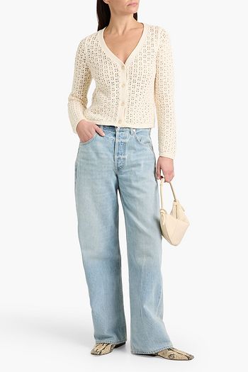 Off-the-shoulder ribbed wool and cashmere blend cardigan