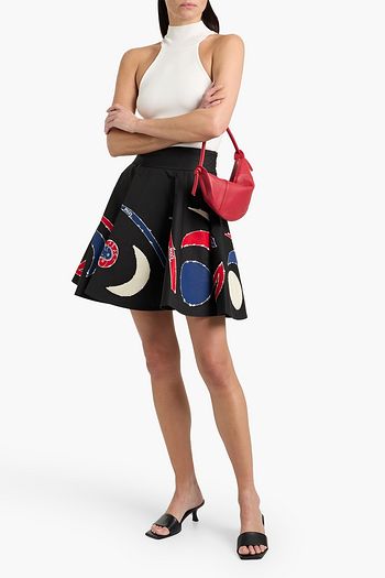 Priya asymmetric ruched satin and printed tulle mini skirt