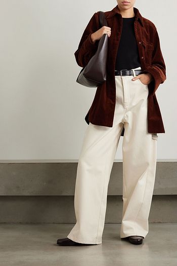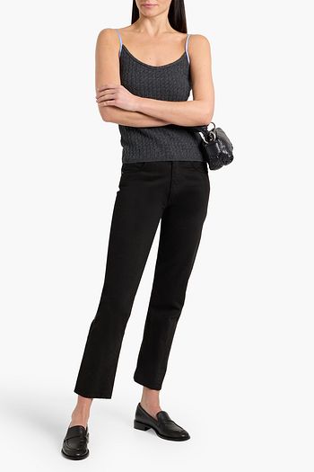 Cotton Oxford-paneled cable-knit wool and cashmere-blend camisole