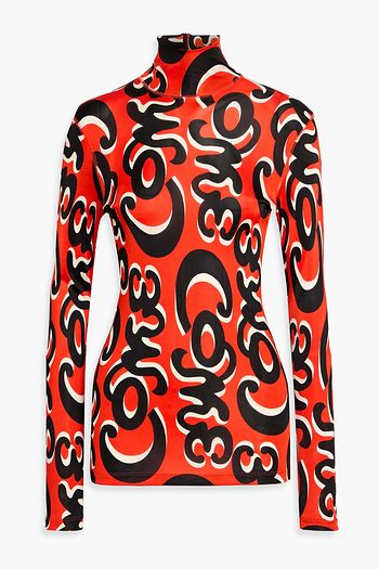 Printed stretch-mesh turtleneck top
