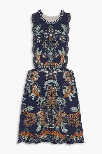Embellished laser-cut linen mini dress