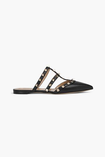 Rockstud pebbled-leather slippers