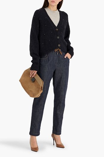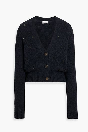 Bead-embellished printed wool, cashmere and silk-blend hoodie