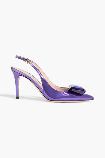 Jaipur crystal-embellished mirrored-leather slingback pumps