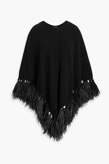 Feather-trimmed wool and cashmere-blend poncho