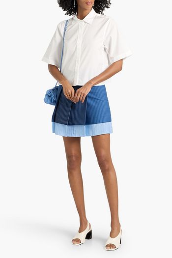 Layered pleated pinstriped wool and cupro-blend satin mini skirt
