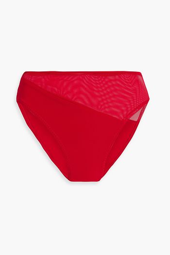 One-shoulder mesh-paneled bikini top