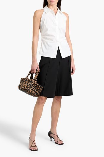 Belted pleated cotton shorts