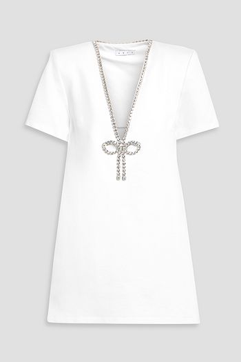 Cropped crystal-embellished jersey T-shirt