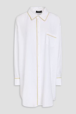 There is something quite satisfying about taking what was a traditional professional menswear suiting staple — the crisp shirt worn under a power suit tailored say, on Savile Row — and subverting it for more than just power moves on Wall Street. I’ve gone to many a cocktail party not in the mood to wear a dress, and I find adding a bold pair of earrings with an oversized shirt buttoned up all the way, collar up, and tucked into a voluminous skirt is as much a statement as a gown. Sharon Stone went even bolder with her crisp white shirt fully unbuttoned, tucked into a satin, lilac skirt for the Oscars in 1998! And I love how Jenna Lyons wears an oversized Oxford shirt these days fully unbuttoned tucked into her jeans, with flashes of skin and jewelry, less preppy and more sensual despite its thick, crisp cotton fabric.