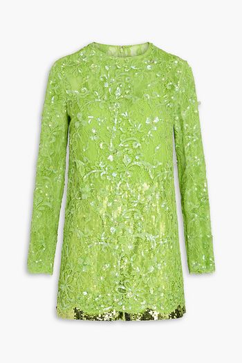 Lace-trimmed crystal-embellished tulle top