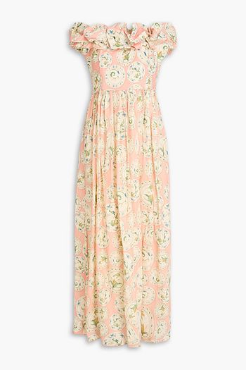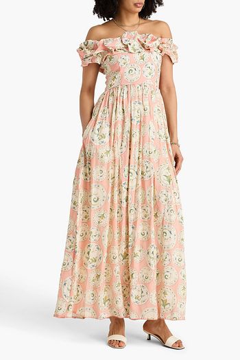Espliego Bisutería ruffled floral-print linen and silk-blend satin maxi dress
