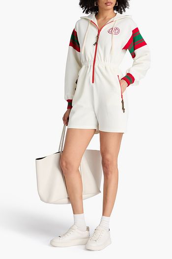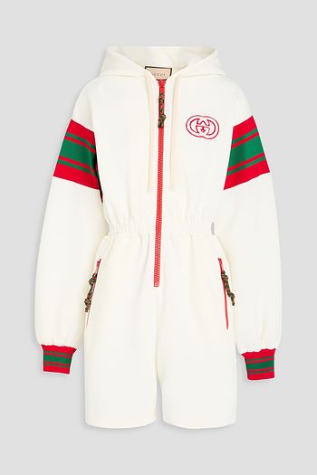 Striped twill hooded playsuit