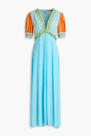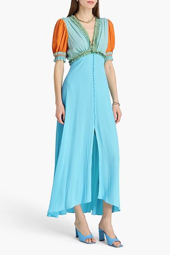 Lina lace-trimmed silk-blend satin-jacquard maxi dress