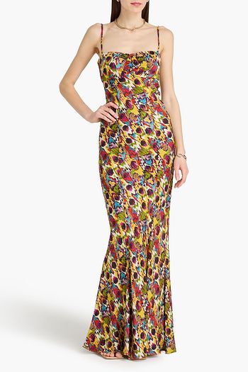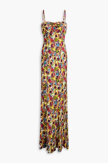 Vida ruffled floral-print silk-satin jacquard maxi dress