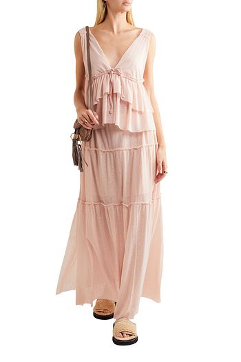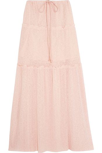 Ruffle-trimmed open-knit maxi skirt