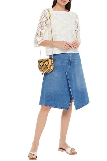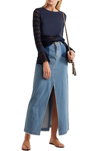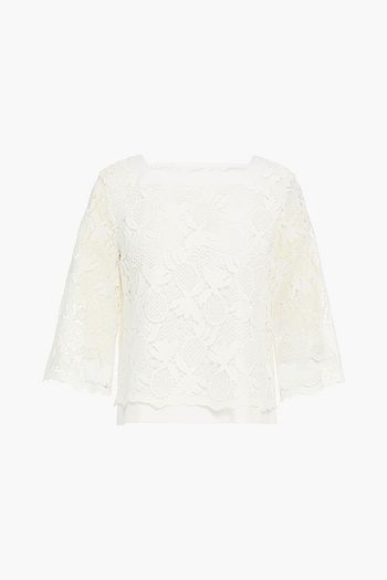 Embroidered tulle-trimmed stretch-jersey and open-knit top