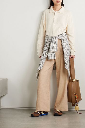 Linen, wool, silk and cashmere-blend wide-leg pants