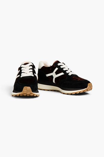 Leopard-print velvet, leather and suede sneakers