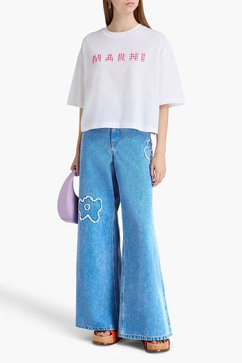 Bead-embellished high-rise wide-leg jeans