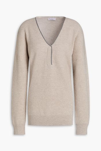 Ribbed wool, silk and cashmere-blend turtleneck sweater