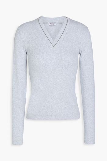 Nate button-embellished ribbed Pima cotton-blend jersey turtleneck top