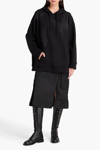 Lace-paneled French cotton-terry hoodie