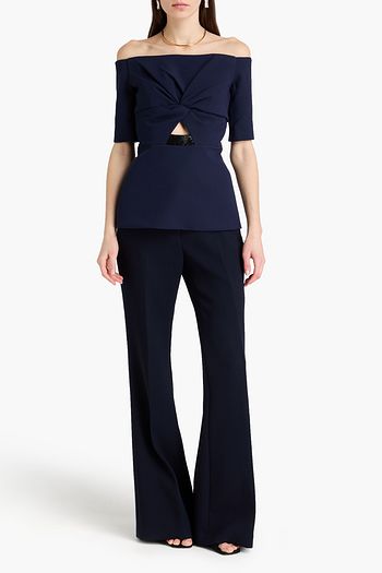 Tecca off-the-shoulder bead-embellished cutout crepe top
