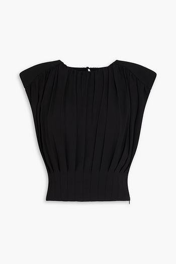 Cropped tie-front crystal-embellished satin-jersey shirt