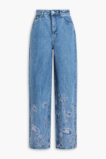 Embellished high-rise straight-leg jeans