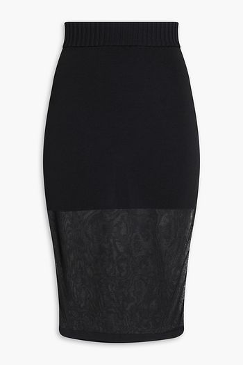 Satin-trimmed mesh midi pencil skirt