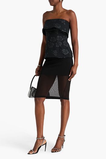 Strapless floral-appliquéd woven mini dress