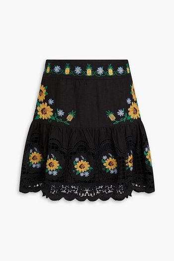 Nori Relicario embroidered linen mini skirt